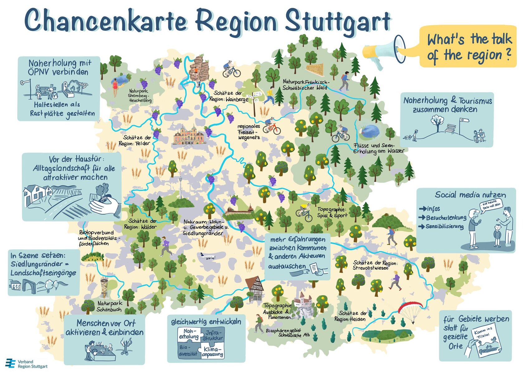 Mit der Entwicklung einer regionsweiten, dialogbasierten Naherholungskonzeption rückt der Landschaftspark Region Stuttgart erstmals vom bisherigen Ansatz der teilregionalen Masterpläne ab. Dazu wurde erstmals eine zweimonatige Onlinebefragung mit interaktiver Karte gestartet, um die Bürgerschaft direkt einzubeziehen. So konnten zahlreiche Projektideen und Impulse für die Gestaltung von Alltagslandschaften gewonnen werden – oft mit dem Fokus auf die Qualifizierung bestehender Infrastrukturen statt auf neue Angebote.